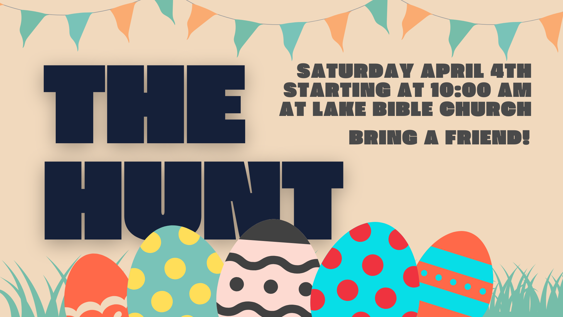 Join us for The Hunt, a fun and welcoming Easter event for families in our community! This is a great opportunity for kids to enjoy an organized egg hunt while families connect, relax, and celebrate the joy of the Easter season together.